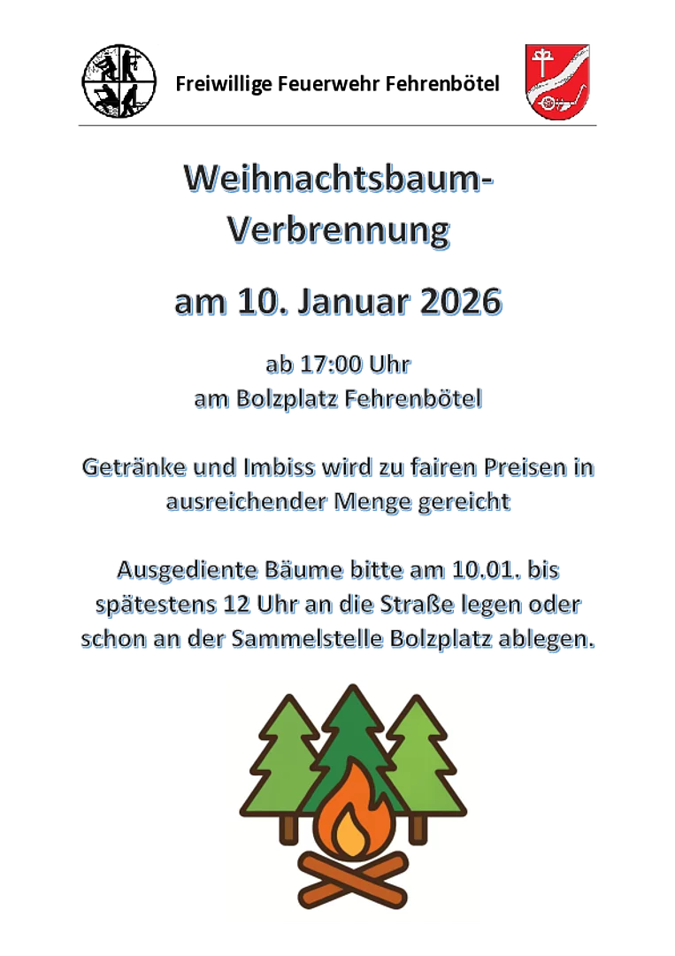 Rickling: Tannenbaum-Verbrennung in Fehrenbötel